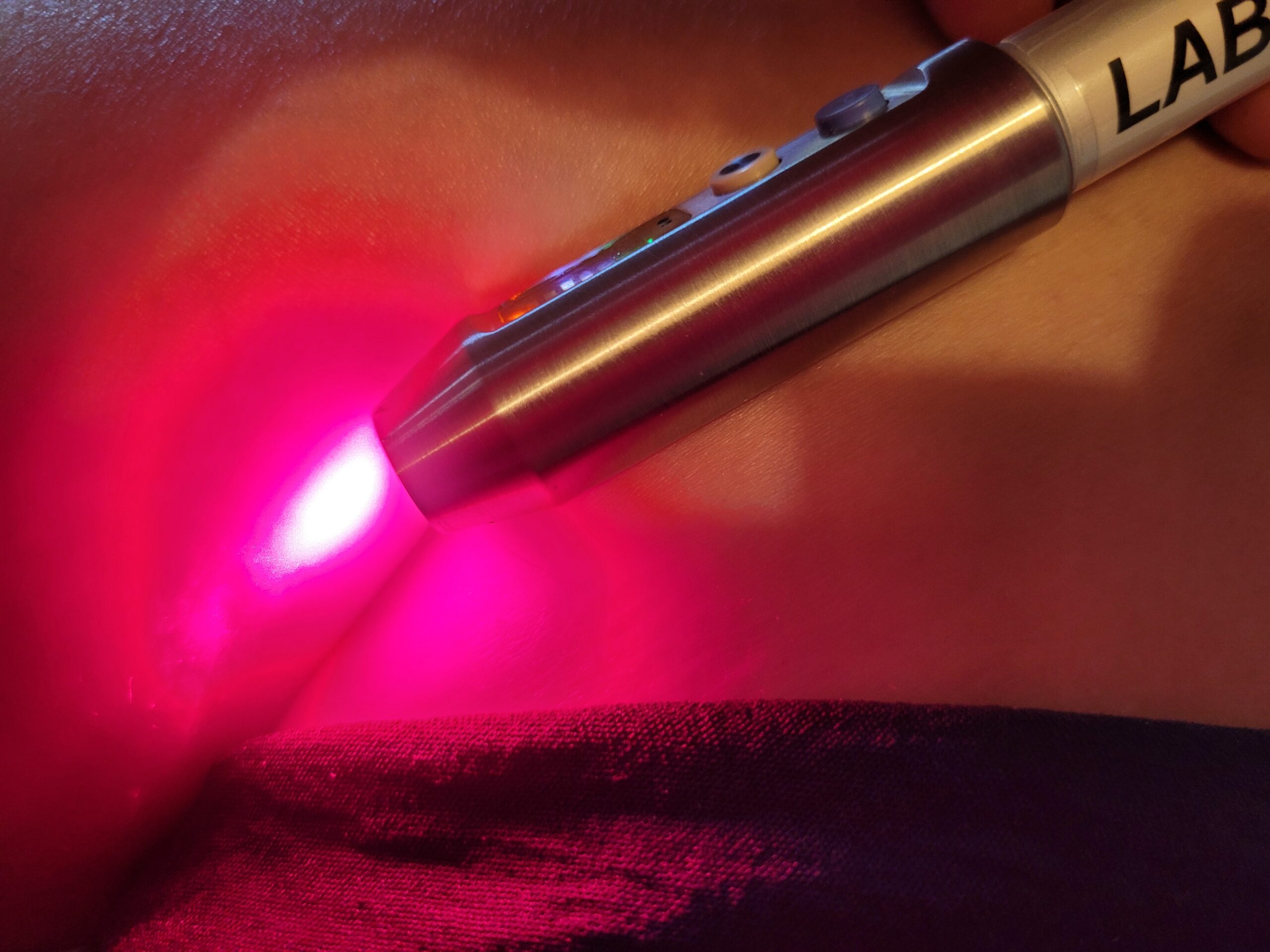 Der Laser arbeitet mit sichtbarem Licht niedriger Intensität. Während der Behandlung tragen sowohl Behandelnde als auch Behandelte Schutzbrillen zum Schutz der Augen.